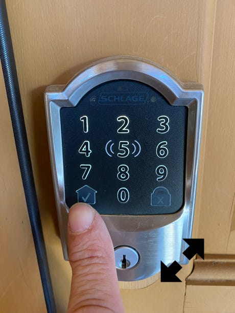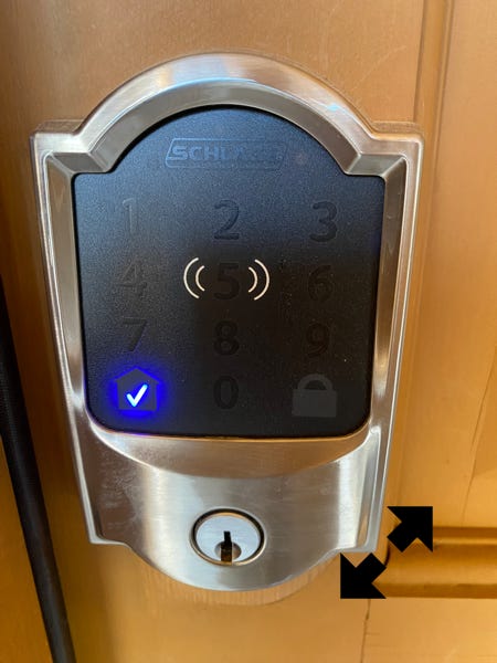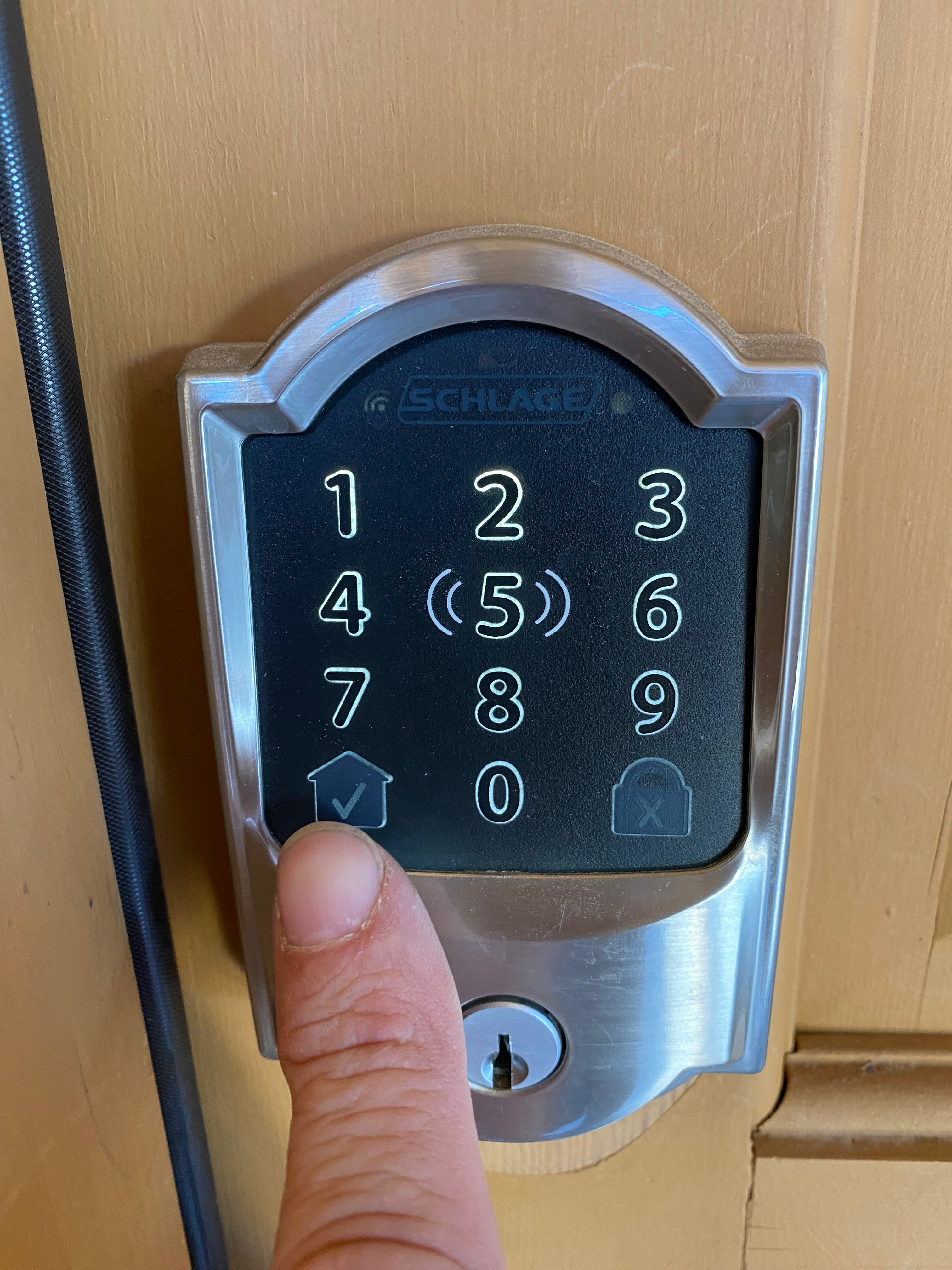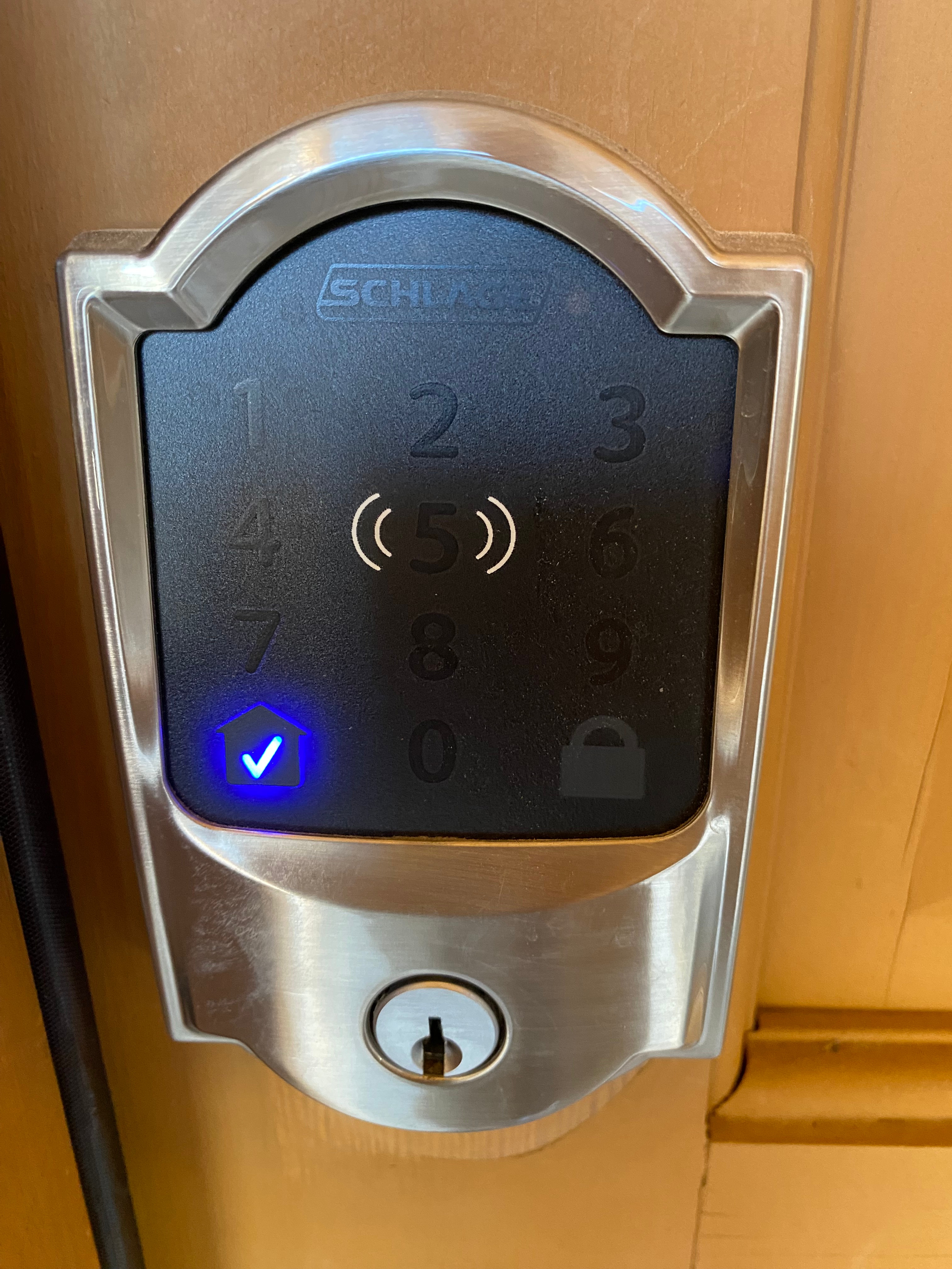 You will hear the door unlock and a blue checkmark will appear in the “House” button.