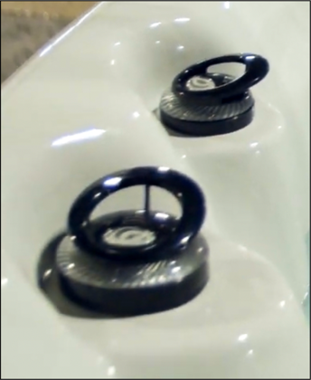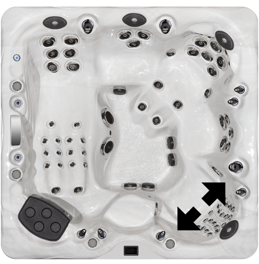 And the knob on the right side of the spa moves the water from the 22 jets on your back to the hips.
